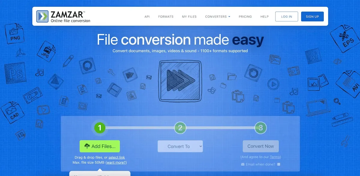 Zamzar supporta oltre 1.100 tipi di conversione file per quasi ogni esigenza. Puoi verificare i tipi di conversione popolari direttamente sulla homepage se desideri essere sicuro prima di iniziare.