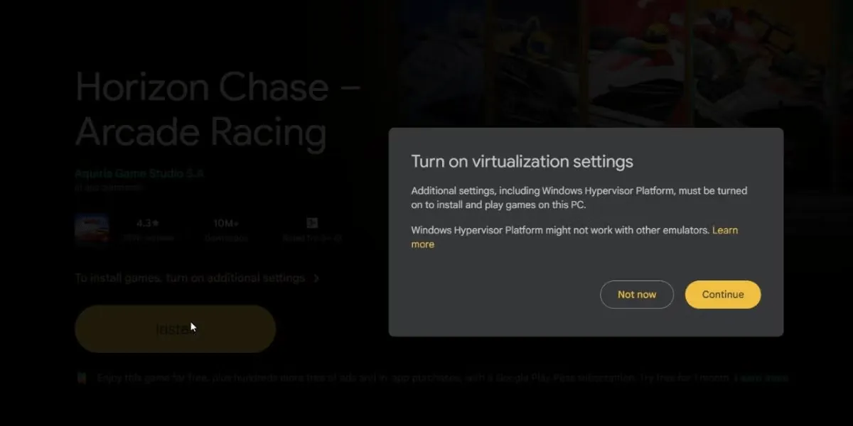 Quando installi un gioco per la prima volta, noterai che verrà installata anche la piattaforma di virtualizzazione di Windows sul tuo PC. Questo è normale e necessario per giocare con Google Play Games. Devi installarlo solo una volta.