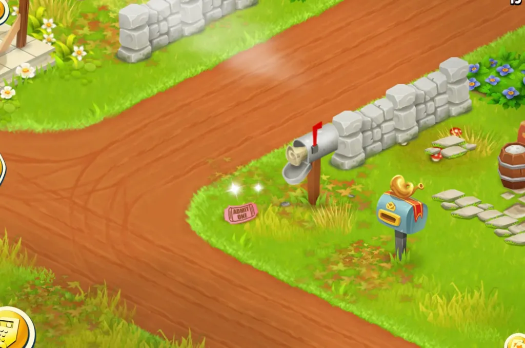 Un particolare biglietto simile a quelli del cinema apparirà lungo il margine della strada, accanto alla cassetta della posta. Cliccandoci sopra, verrà proposto di guardare brevi annunci pubblicitari per ottenere fantastiche ricompense. Basta effettuare una piccola donazione a Hay Day e sarai gratificato! Rilassati, goditi il momento e visualizza il maggior numero possibile di annunci per ricevere gadget che potranno essere successivamente venduti per guadagnare qualche moneta extra.