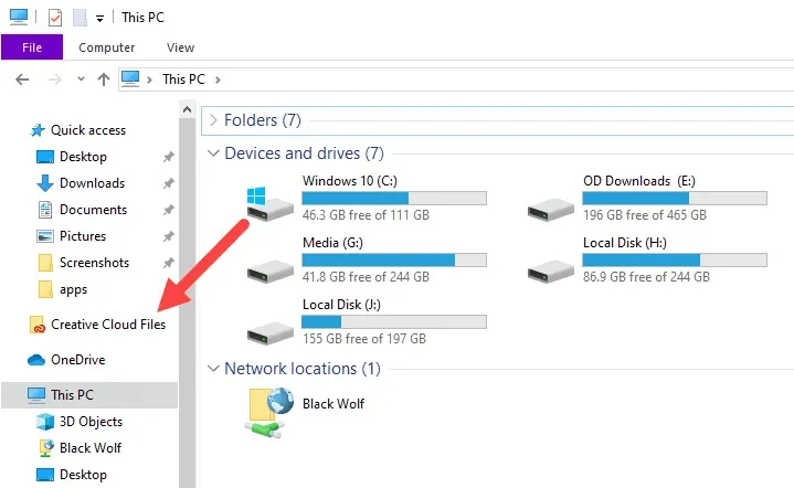 8. Riapri o avvia Esplora file e non vedrai più la cartella File Creative Cloud.