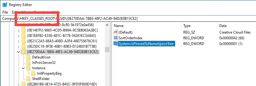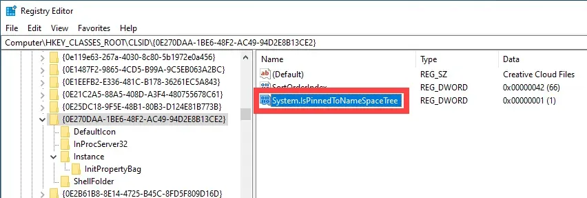 5. Nel pannello di destra, fare doppio clic sul valore “System.IsPinnedToNameSpaceTree”.