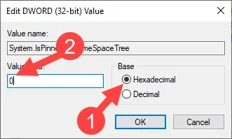 6. Digitare “0” nel campo Dati valore e fare clic sul pulsante “Ok” per salvare le modifiche.