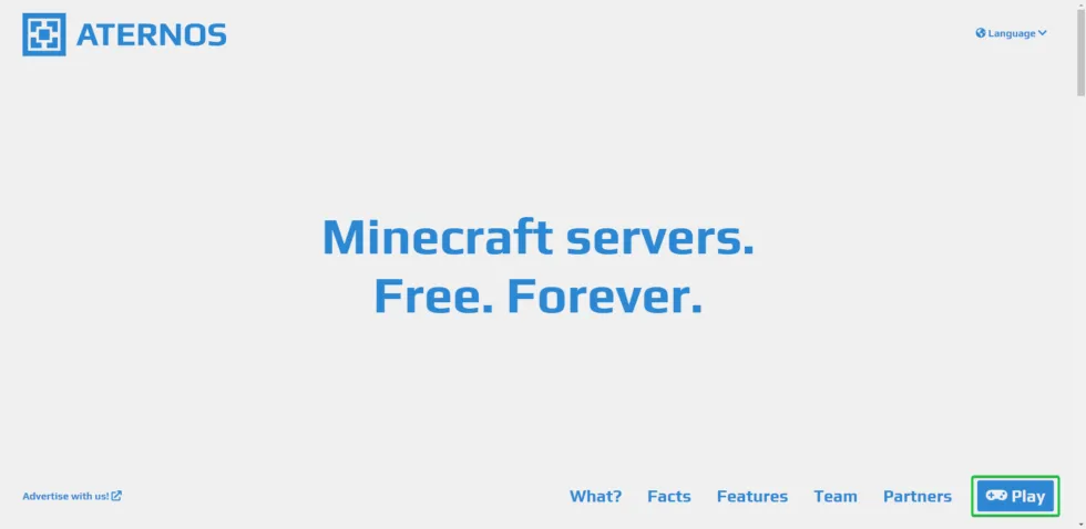 Per configurare il tuo server Minecraft, dovrai iniziare configurando un account Aternos. Puoi farlo andando sul loro sito web. Una volta creato un account, devi premere il pulsante “Play” in basso a destra dello schermo. Se non appare subito, prova a scorrere verso il basso fino a trovarlo.