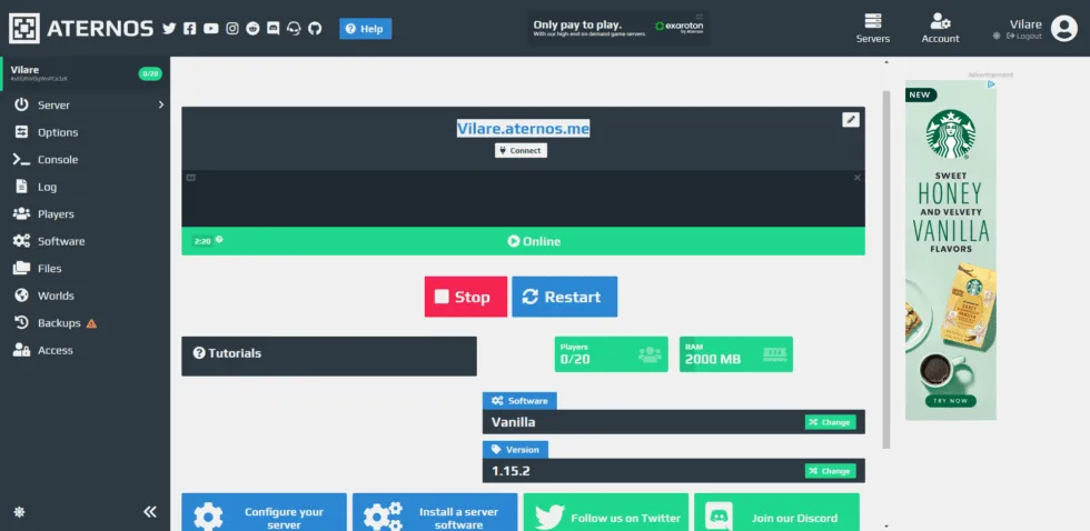 Come configurare Aternos