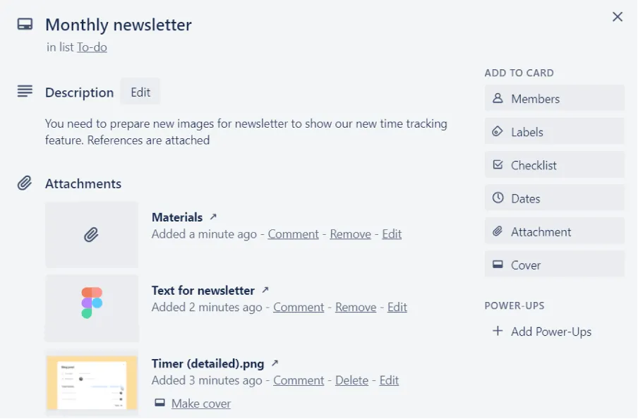 Il budgeting è un altro aspetto importante, non importa se si lavoro su progetti interni o esterni. Per assicurarsi di non superare la stima, basta utilizzare il monitoraggio del tempo. La buona notizia è che non bisogna passare a un’altra app è possibile lasciare tutto a Trello. In realtà, ci sono più app di monitoraggio del tempo autonome che supportano l’integrazione con Trello.