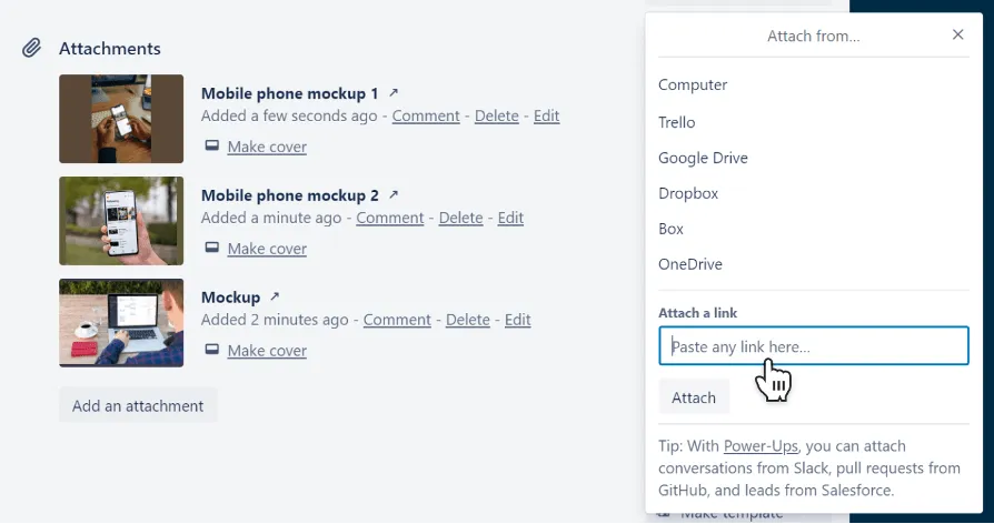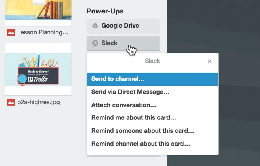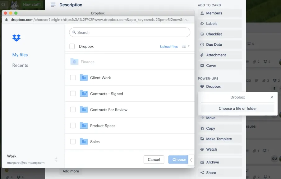 È possibile utilizzare alcuni utility power-up come Google Drive, Dropbox, ecc. Per sfogliare i file direttamente da Trello.