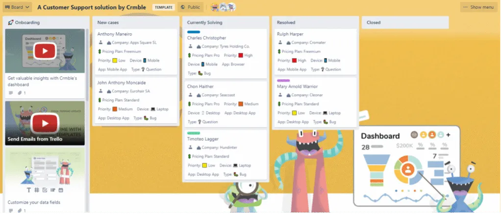 Le aziende possono avere una dashboard dell’assistenza clienti per il proprio team si supporto. Questa commissione tiene traccia di tutti i casi nuovi, in corso e risolti. Le card hanno dettagli come il piano, il tipo, il dispositivo, la priorità e l’app dell’utente