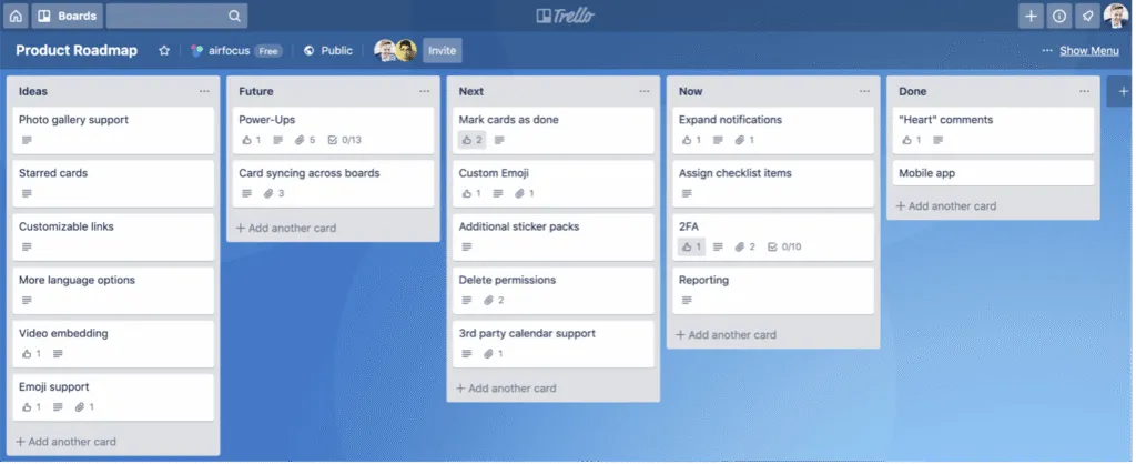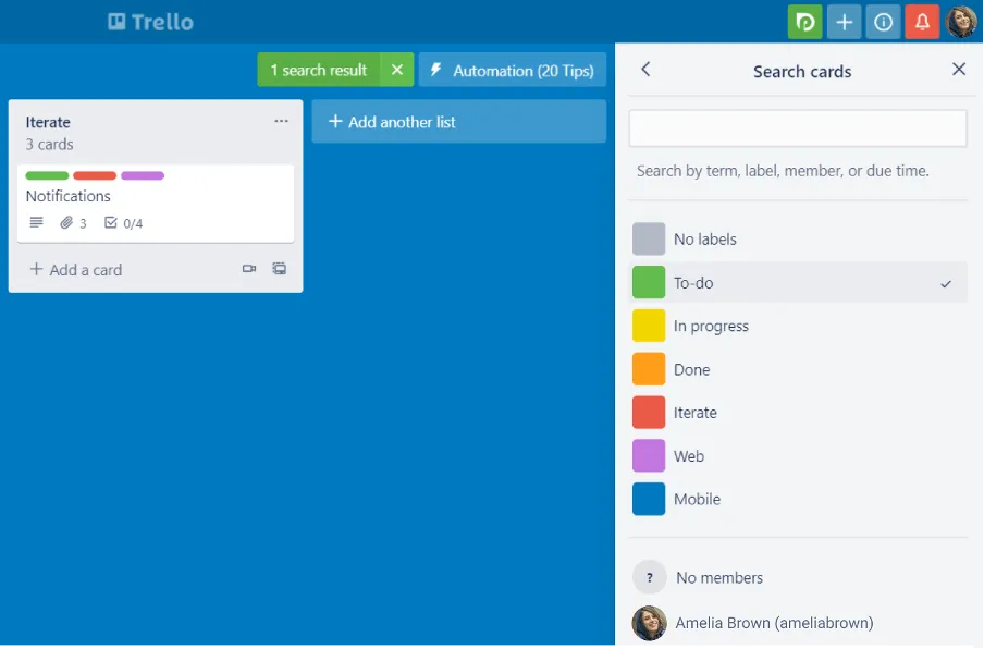 - È adatto per progetti più piccoli. Le persone che hanno progetti e team più piccoli possono sicuramente trarre vantaggio da Trello. Tuttavia, potrebbe essere un problema se il team cresce e il progetto diventa più complesso.