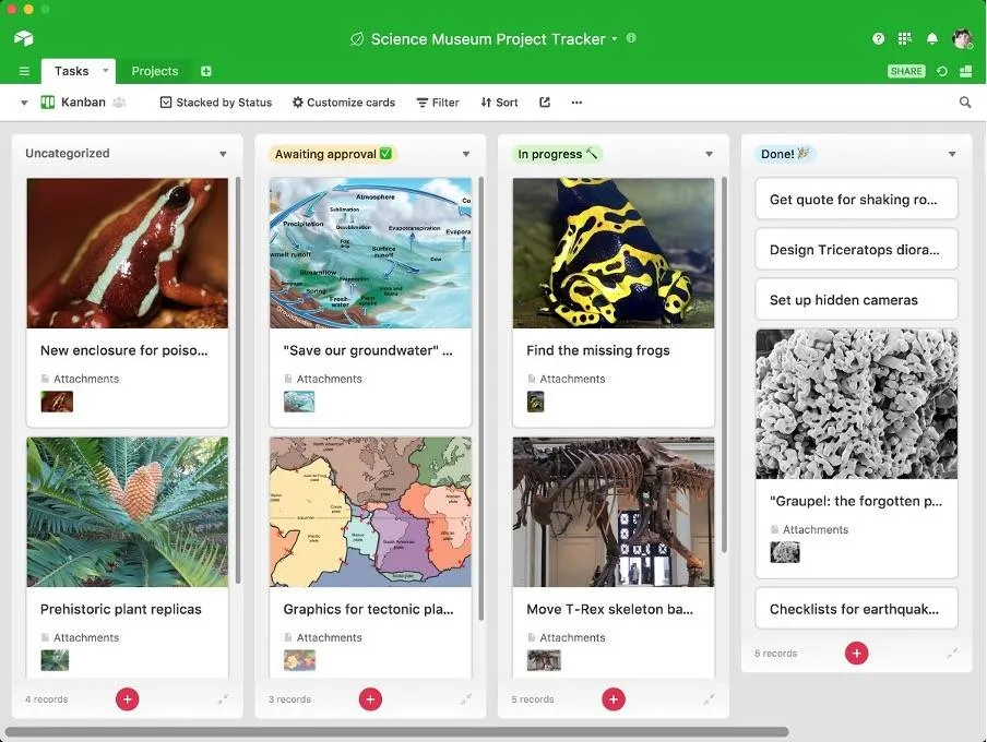 Aggiungere facilmente nuovi progetti facendo clic sul segno più ogni colonna ed è possibile spostare le schede in base alle proprie esigenze.